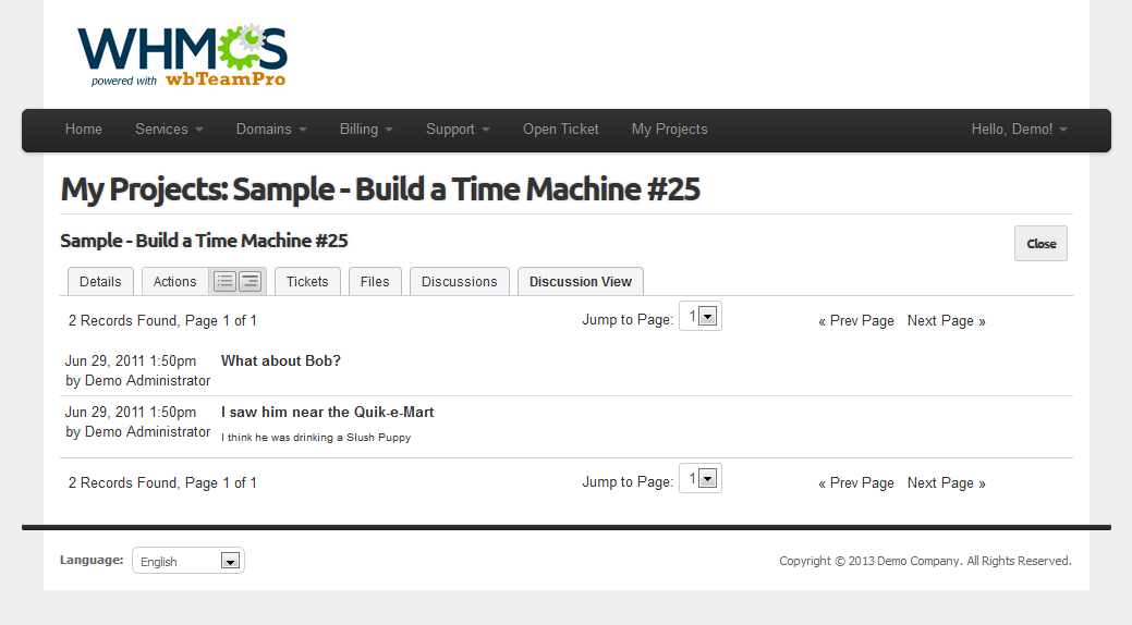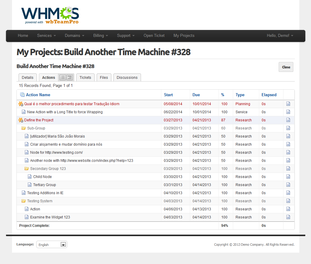 With wbTeamPro Project Management for WHMCS you will receive personal support and ongoing feature enhancements. wbTeamPro strives to provide an excellent balance of feature-rich functionality with a well organized and intuitive system for managing the breath of your project material.